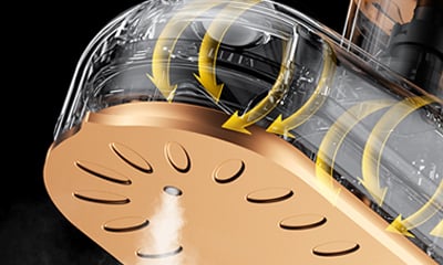 The upgraded titanium soleplate with uniform steam vents provides wider coverage, enabling faster and more efficient wrinkle removal.