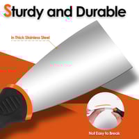 Ergonomic comfort handle: These 10 stainless steel putty knife tools are with a soft-rubber, no-slip grip handle. The ergonomic design meets the highest standards. A hole at the top of each handle for storage. Tips are made of solid stainless steel, which is rust-proof and extremely sturdy.